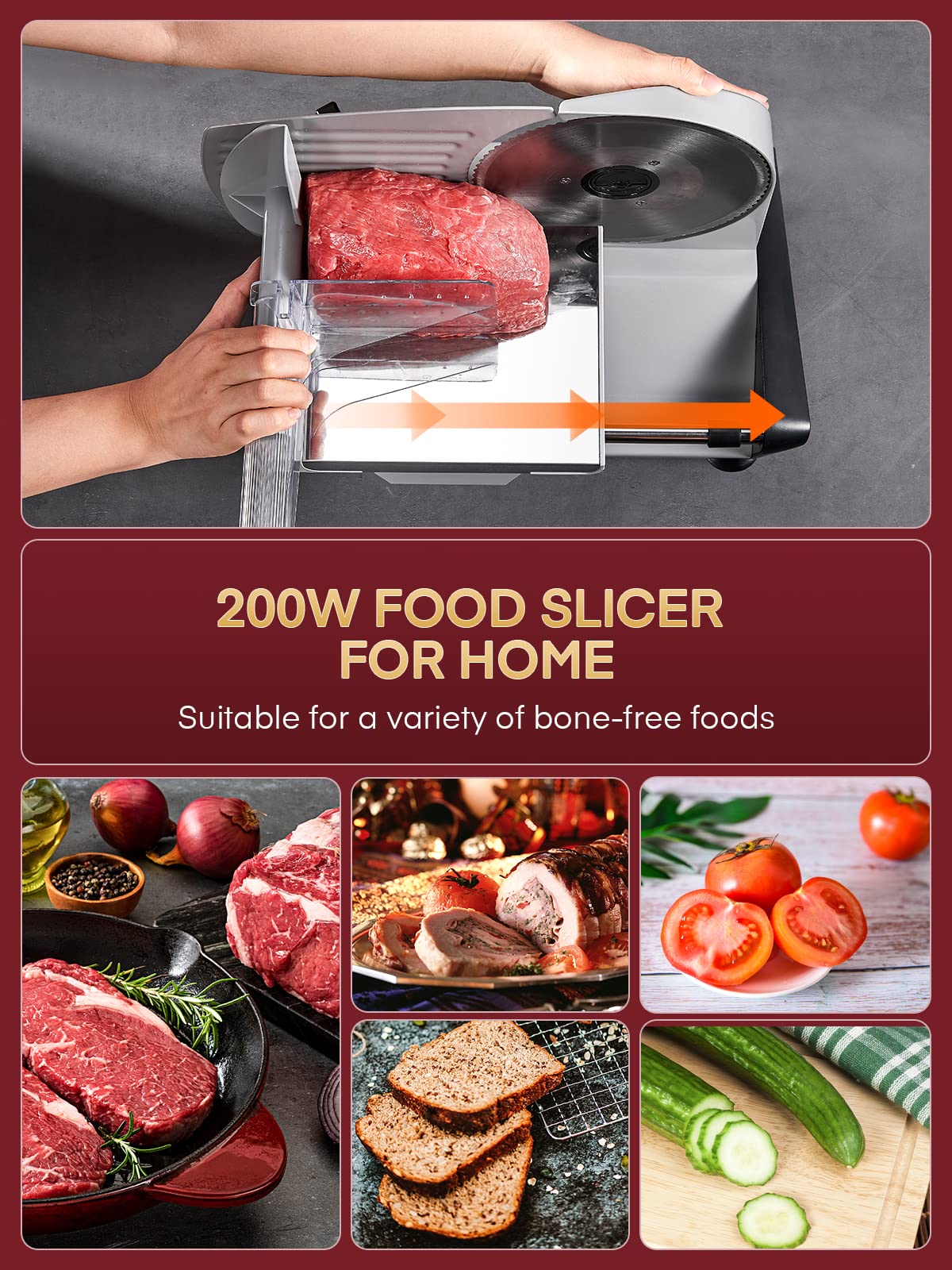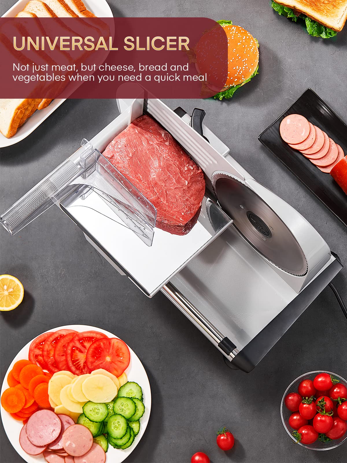 • 【Gleichmäßige Dicke】Der Wurstschneider mit eingebautem 0-15 mm einstellbarem Dickenknopf zum Schneiden von Fleisch/Gemüse/Brot so dick wie Sie möchten, erleichtert Ihre Arbeit in der Küche. Ideal für die Zubereitung frischerer Platten, Vorspeisen, Sandwiches und mehr und bietet Ihnen eine Allzweck-Schneidemaschine. (Klingen laufen langsamer für bessere Schneidergebnisse und besseren Maschinenschutz für eine längere Lebensdauer der Maschine).