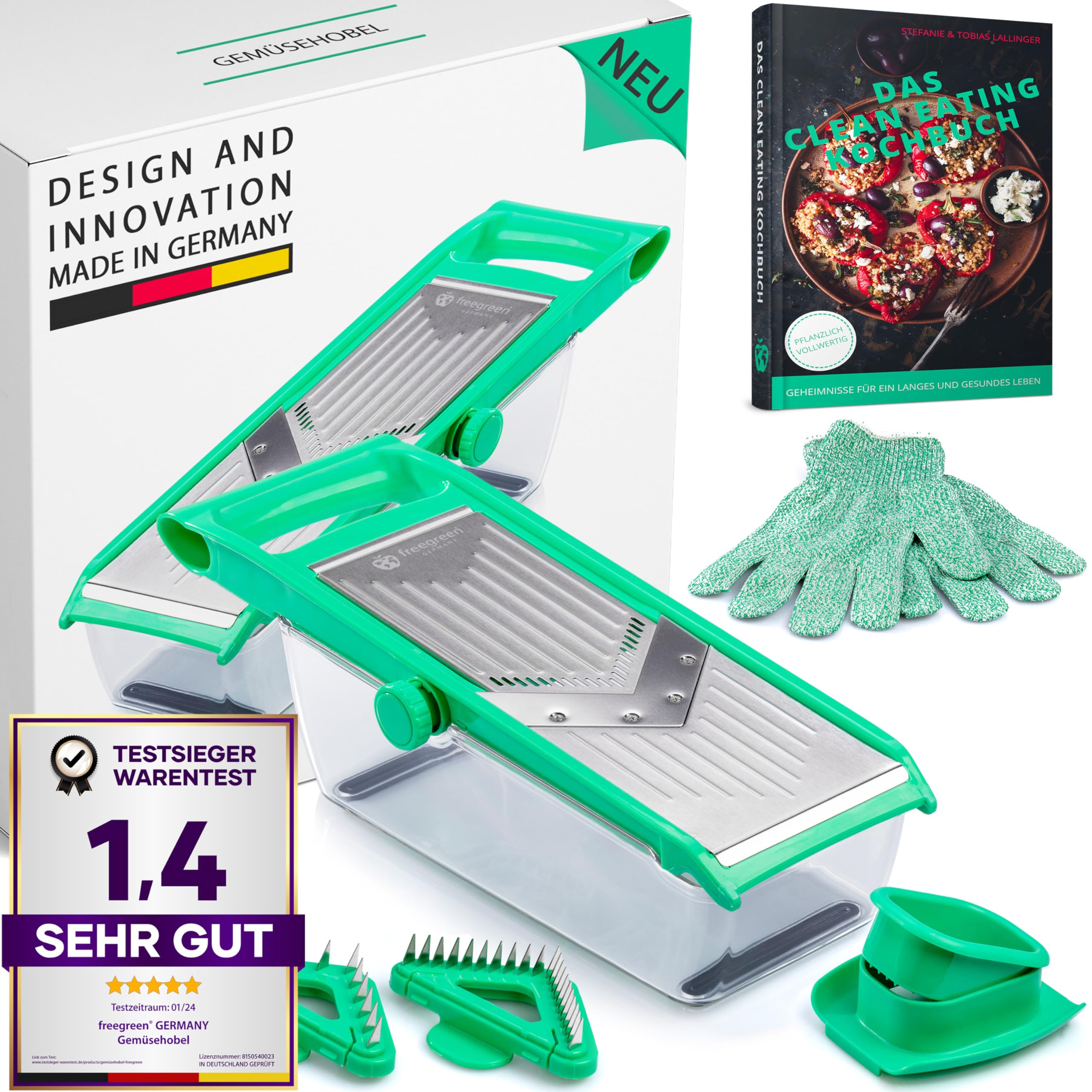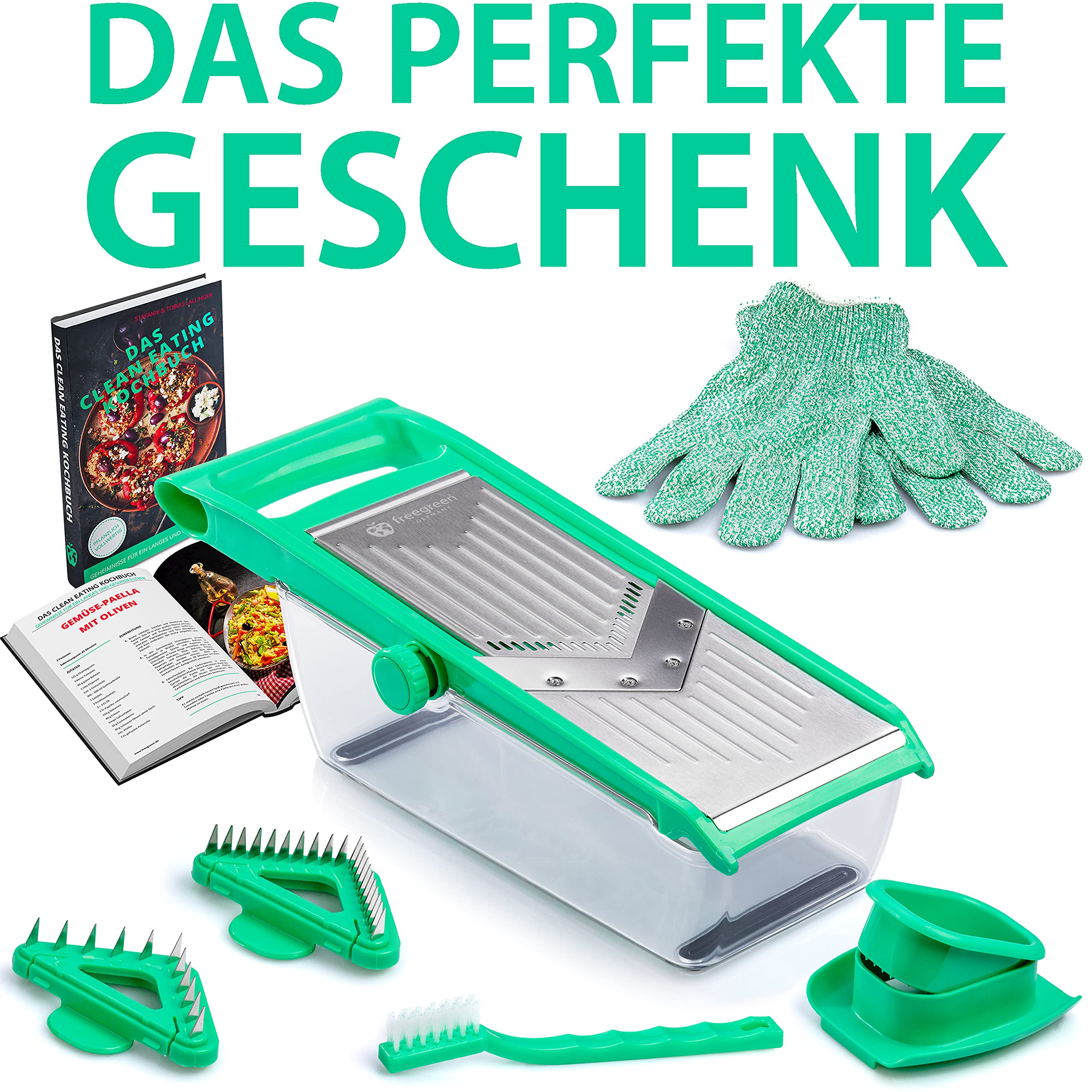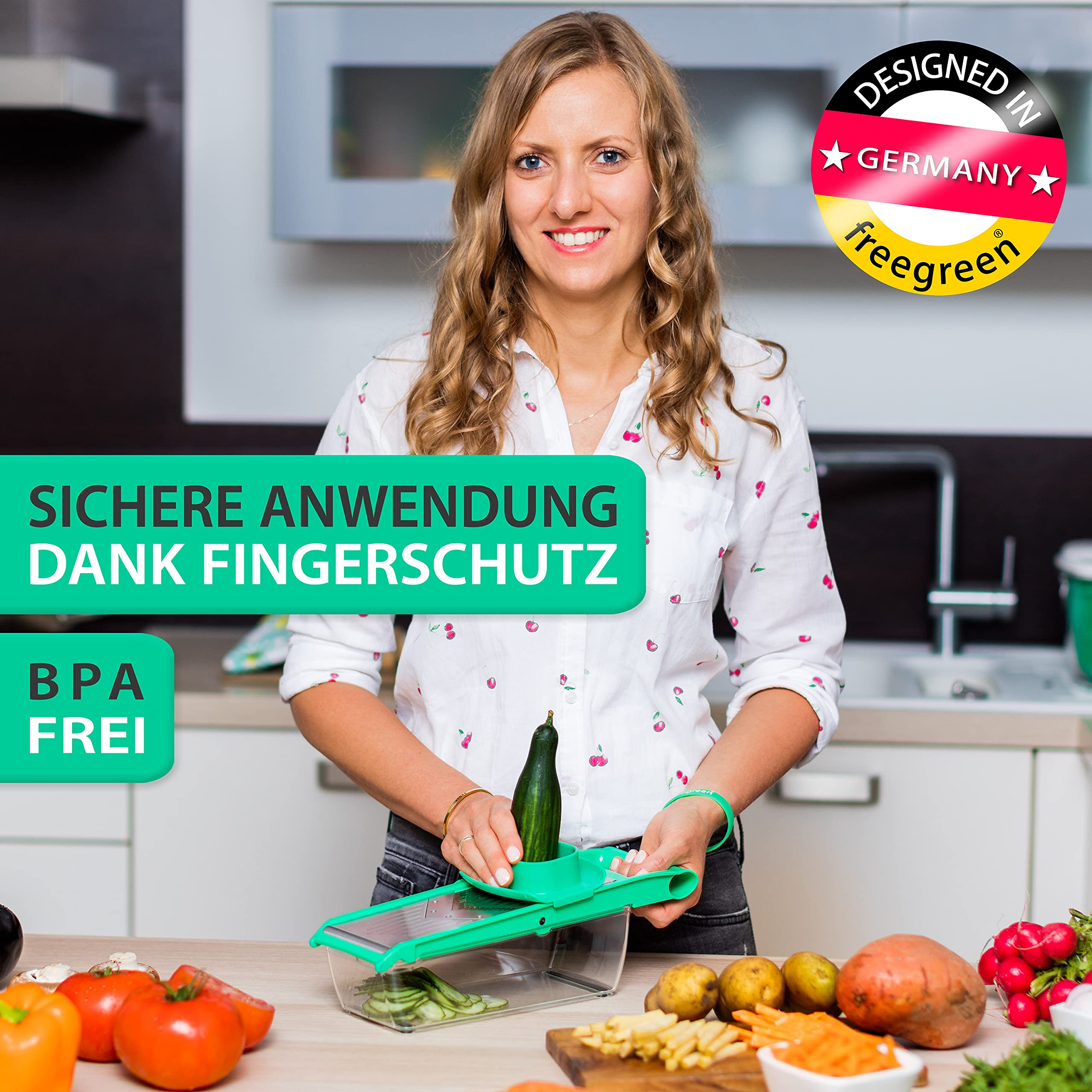 • 👩‍🍳 𝗙Ö𝗥𝗗𝗘𝗥𝗧 𝗚𝗘𝗦𝗨𝗡𝗗𝗛𝗘𝗜𝗧 𝗨𝗡𝗗 𝗪𝗢𝗛𝗟𝗕𝗘𝗙𝗜𝗡𝗗𝗘𝗡 - Mit dem freegreen Gemüsehobel steht der blitzschnellen Zubereitung von abwechslungsreichem, gesundem und selbstgemachtem Essen im rasanten Tempo ab sofort nichts mehr im Wege - Ein Held des Alltags!