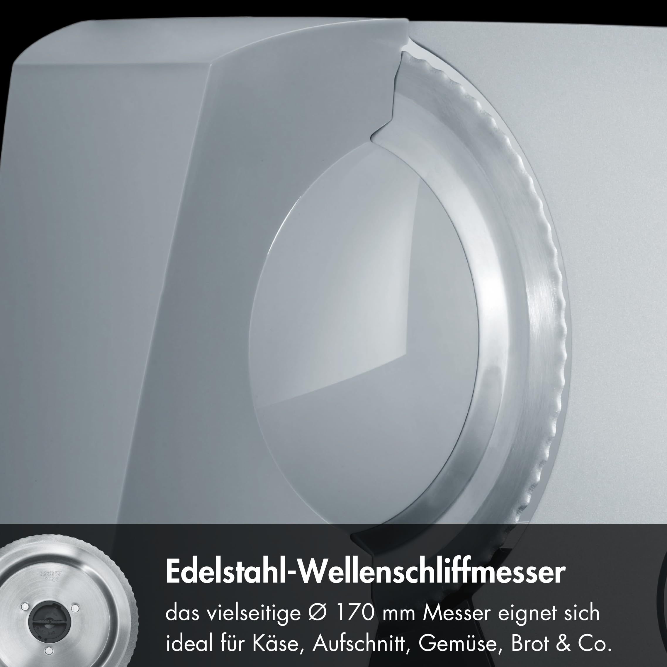 • Gewellte Klinge aus Edelstahl Ø 170 mm mit Messerabdeckplatte